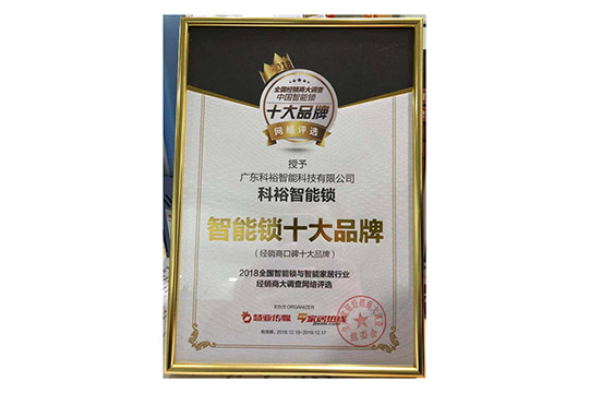 在“2018全國智能鎖與智能家居行業(yè)經(jīng)銷商大調(diào)查活動“中,科裕智能鎖榮獲慧亞傳媒授予“智能鎖經(jīng)銷商口碑十大品牌”。