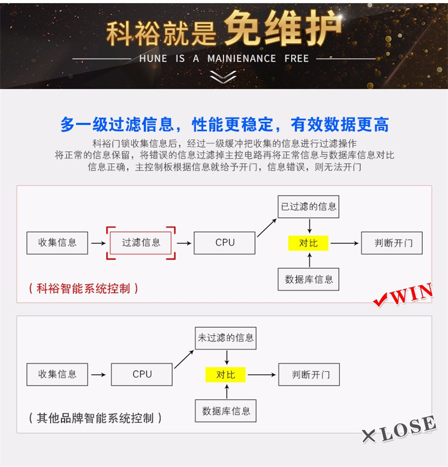 1、加厚加重型美標鎖體,全銅鎖芯,國際品牌<萬寶至>精密離合電機,鎖體保修六年;