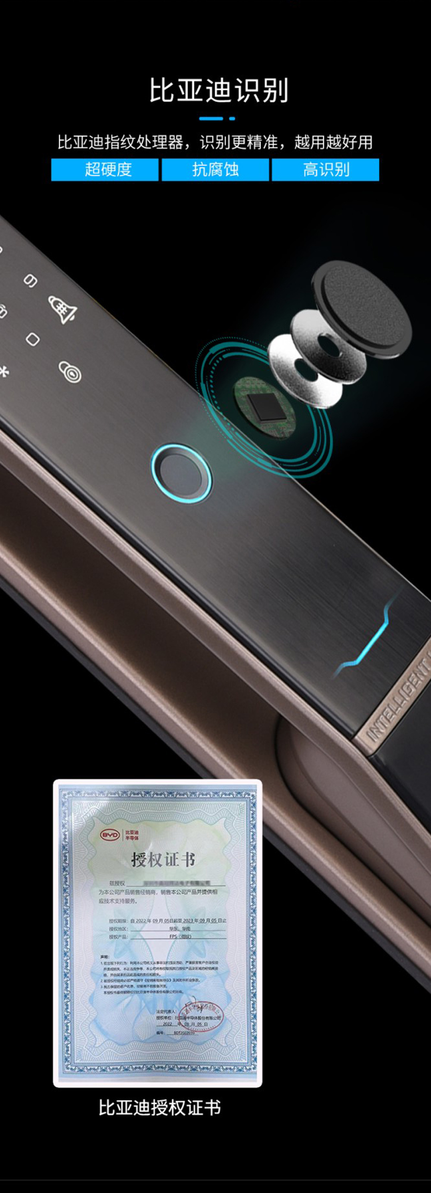 3、國貨之光比亞迪指紋處理器,專 為中國人指紋設(shè)計(jì),識別更精準(zhǔn),越用越好用。
