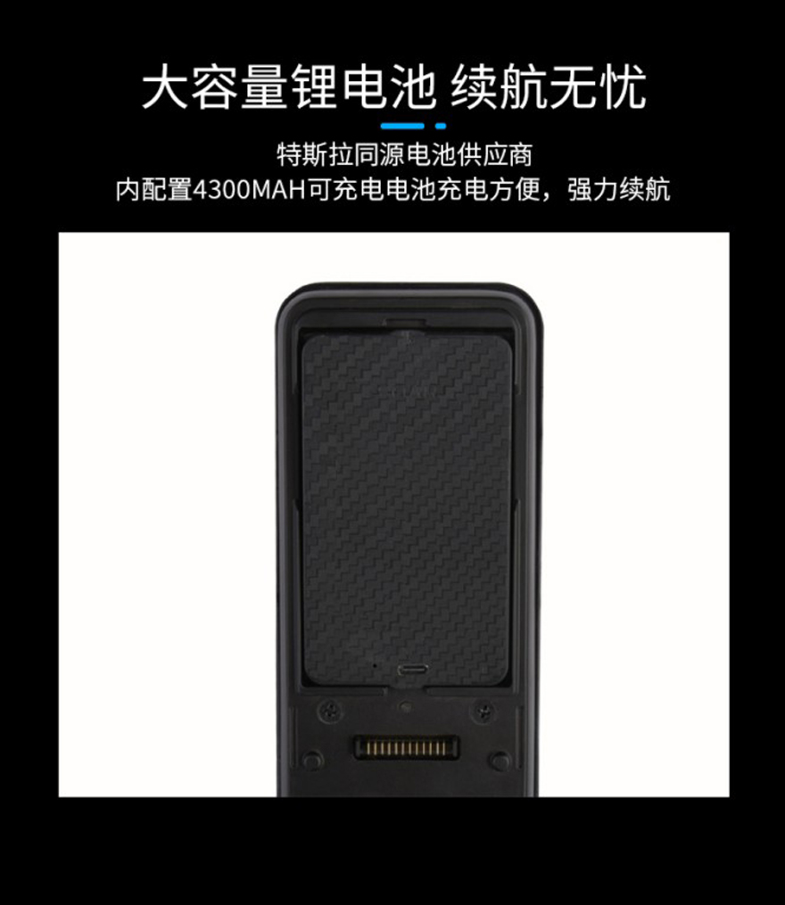 7、特斯拉同源雙組鋰電池,超長續(xù)航。搭配Air Droid USB應(yīng)急供電接口,低電量自動報(bào)警提示,全天候放心使用。