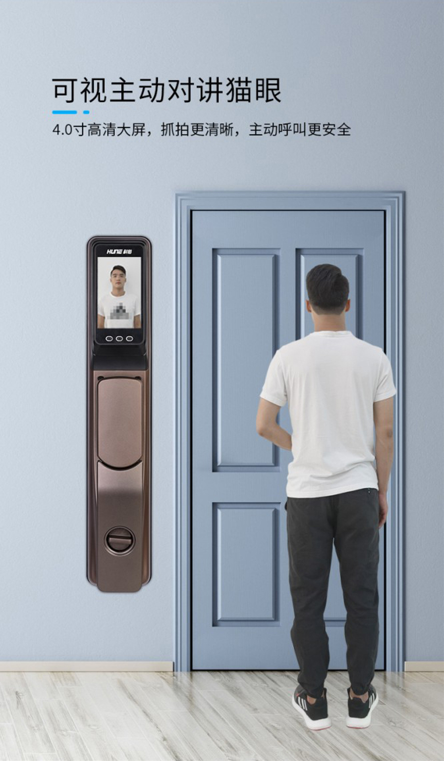 4、4.0寸高清可視主動監(jiān)控抓拍對講貓眼大屏,抓拍更清晰,主動呼叫更安全。