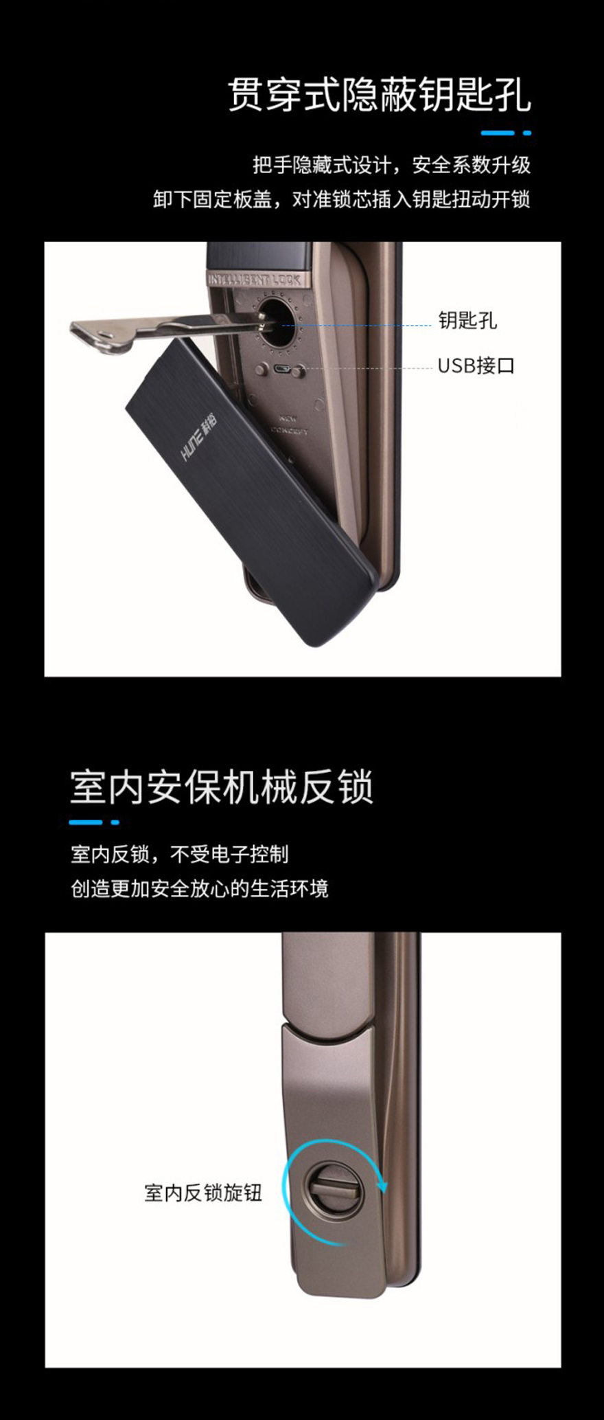 應(yīng)急方案:USB安卓充電插口/機(jī)械鑰匙