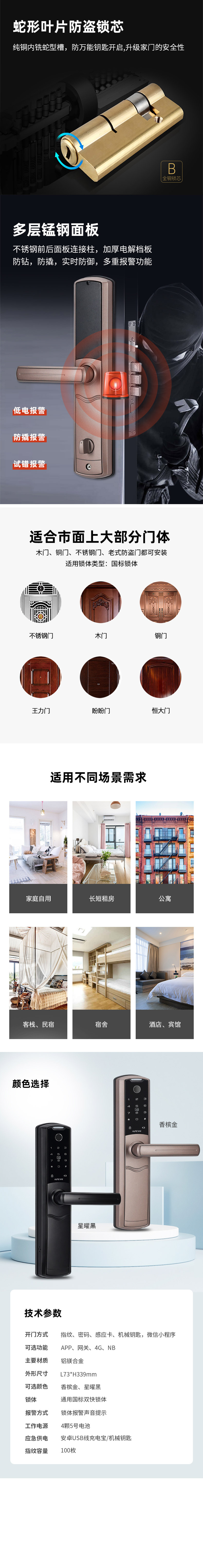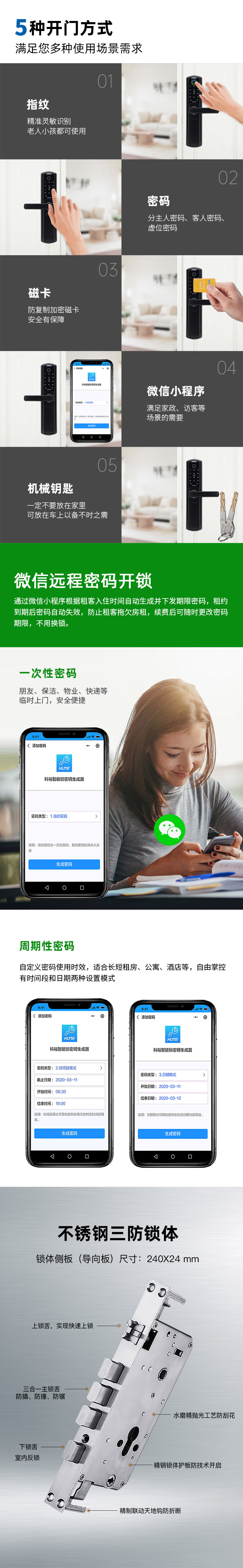 開(kāi)門(mén)方式:指紋,密碼,感應(yīng)卡,機(jī)械鑰匙